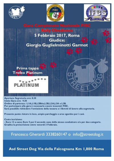Domenica 5 febbraio ci sarà la seconda tappa del campionato nazionale di rally-o, prima del campionato del Lazio. Presso la sede di Street Dog, a Roma, Giorgio Guglielminotti Garmot giudicherà i numerosi binomi romani, laziali, e magari anche provenienti da più lontano, che inizieranno un campionato regionale, quello del Lazio, […]