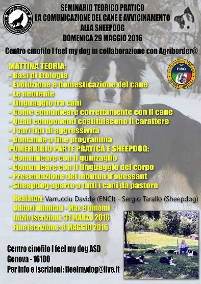 SEMINARIO TEORICO E PRATICO LA COMUNICAZIONE DEL CANE E AVVICINAMENTO ALLA SHEEP DOG
