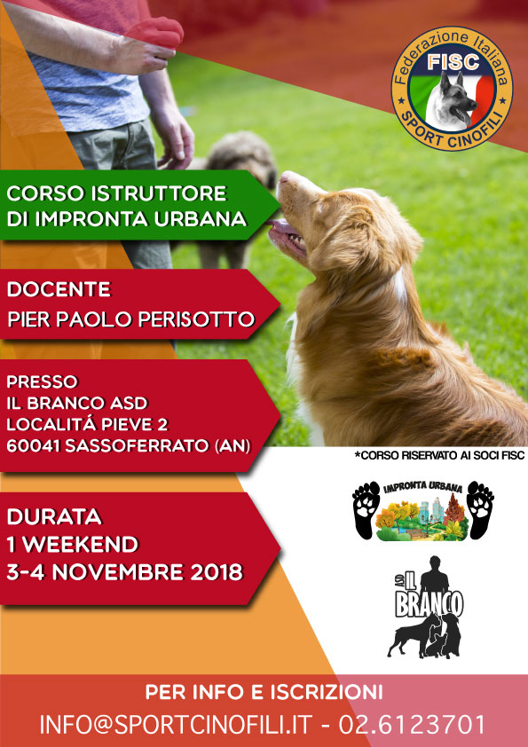 Continuano le iscrizioni al Corso Istruttore Agility 1° liv con Christian Oggioni – Milano che si terrà a partire dal 12 Novembre 2018. DURATA: 12 serate dalle ore 19.00 alle 23.00 PRESSO: Sede FISC – Via Caravaggio 44, Cinisello Balsamo ARGOMENTI: 1- cos’è l’agility dog: cenni storici, la gestione del […]