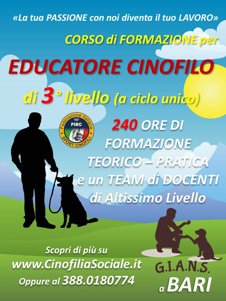 Corso Educatore Cinofilo Sportivo 3 Livello FISC a Bari