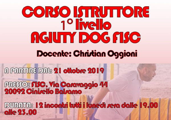 Sono aperte le iscrizioni ai corsi per istruttori di agility a Cinisello Baslamo (MI) il corso del lunedì sera è tenuto da Christian Oggioni e partirà il 21 ottobre alle ore 19.00. Ecco gli argomenti del corso 1- cos’è l’agility dog: cenni storici, la gestione del cane di agility, il […]