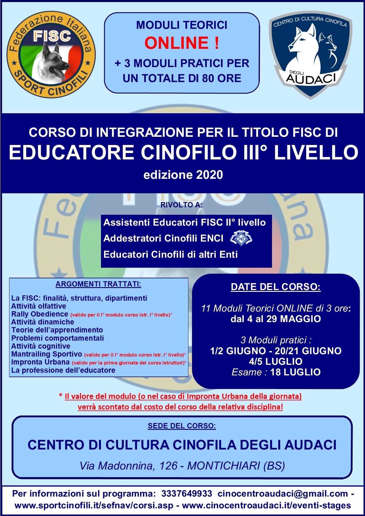 Corso di Equiparazione al titolo di Educatore Cinofilo di 3° livello FISC – ONLINE e PRATICO