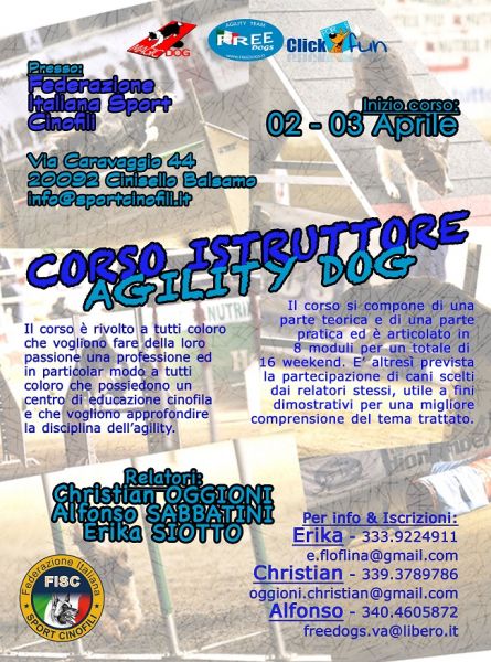 Per tutte le info sul corso potete contattare la Segreteria nazionale ai seguenti recapiti 026123701 oinfo@sportcinofili.it
