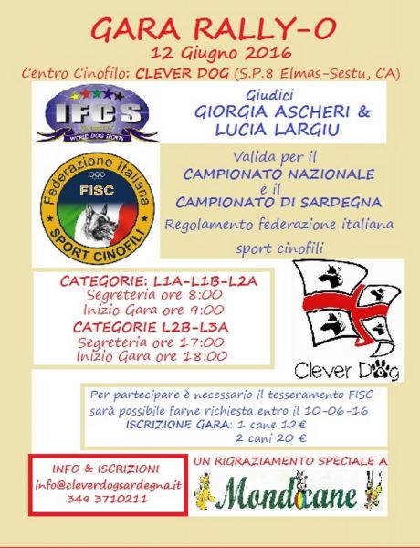 Info & iscrizioni: info@cleverdogsardegna.it – 349/3710211