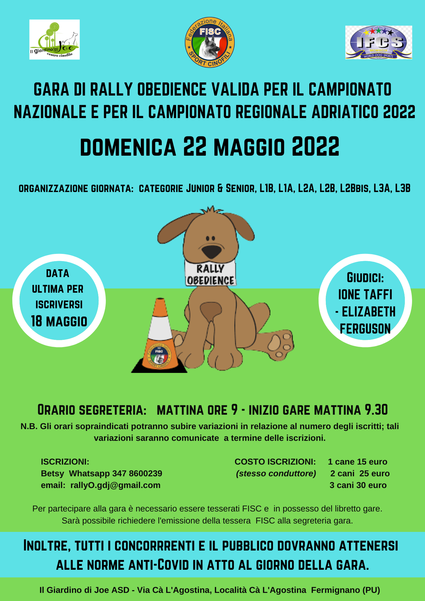 GARA DI RALLY OBEDIENCE VALIDA PER IL CAMPIONATO NAZIONALE E REGIONALE ADRIATICO 2022