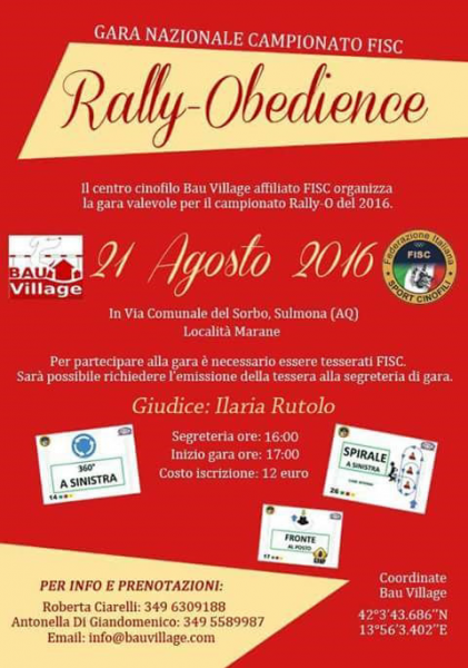 Il 21 Agosto 2016 c/o il Centro Bau Village di Sulmona (AQ)