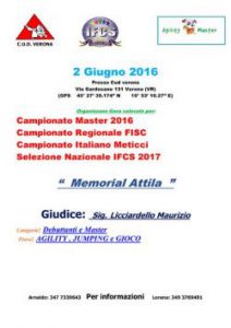 Questa gara è valida per il Campionato Master 2016, per il Campionato Meticci 2016, Campionato Regionale FISC e per la selezione della nazionale IFCS. E’ prevista la categoria debuttanti per il Master, mentre alla categoria open possono partecipare tutti i binomi che vogliono accumulare punti validi per la selezione della Nazionale. Il giudice della manifestazione sarà Licciardello Maurizio.
