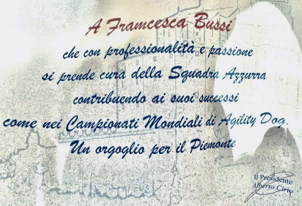 Una figura straordinaria come ha dimostrato nei Campionati Mondiali di Agility Dog, ha contribuito in modo significativo ai successi della squadra azzurra.