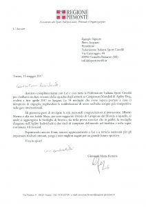 La Regione Piemonte ha voluto complimentarsi con il nostro atleta più medagliato al WAC 2017, Alberto Marmo:
