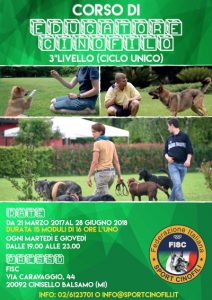 Sono aperte le iscrizioni al Corso Educatore Cinofilo 3 ° Livello Ciclo Unico che si svolgerà presso la sede FISC a partire dal 21 Marzo 2017.