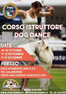 te le iscrizioni al corso istruttore di dog dance 3° livello che si terrà presso il Centro Cinofilo Educatamentecane ASD.