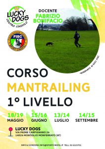 le iscrizioni al Corso Istruttore di Mantrailing Sportivo 1° Livello che si terrà a partire dal 18 Maggio 2019 presso il Centro Cinofilo Lucky Dogs.