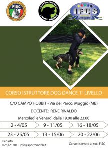 La disciplina affrontata a livello agonistico permette un avanzamento di livello della relazione tra uomo e cane. La docente del corso sarà Irene Rinaldo, Responsabile Nazionale della Dog Dance FISC.