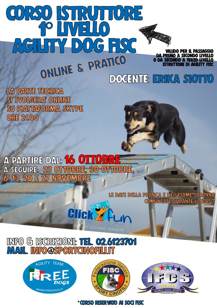 Sono aperte le iscrizioni al corso istruttori di agility con Erika Siotto >> le lezioni si svolgeranno online tramite Skype!