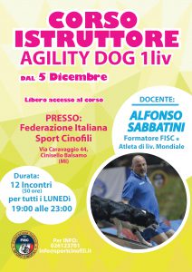 E’ ufficialmente online il corso di formazione per Istruttori di Agility Dog 1° livello con Alfonso Sabbatini. Al corso potranno partecipare tutti gli Istruttori di Agility di 1° e 2° livello che vogliono integrare il loro brevetto!