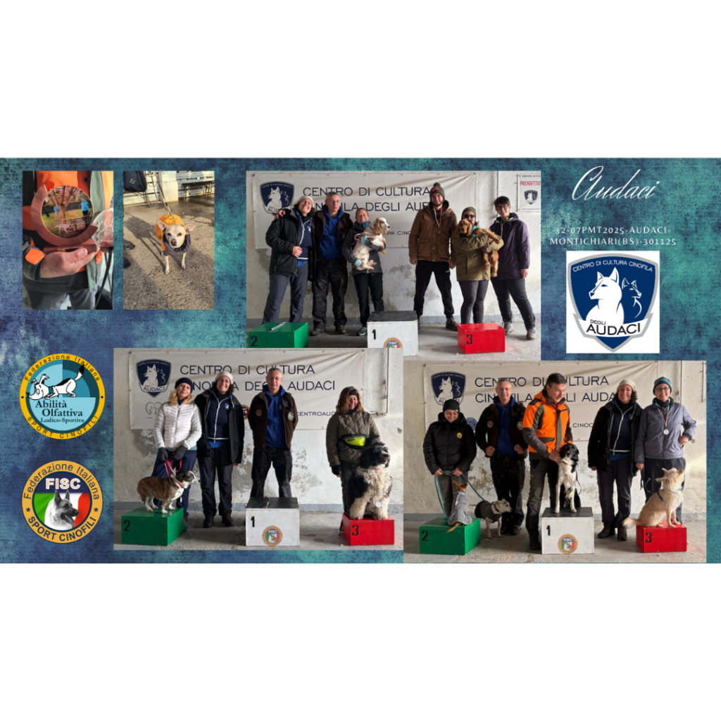 Ed ecco il podio, si diceva, quale anticipo della fine dell’anno… al terzo posto, Milena & Pesca, precedute al secondo posto Meri & Pigulo e insieme a far da cornice al primo posto, Valter & Woody, alla 50esima gara con punteggio valido… traguardo che gli garantisce la vittoria del nostro trofeo Overall Champion, ma anche di questo, ne parleremo nell’artico conclusivo di fine anno… un po’ di suspense uahahhahahhahaaa (risata malefica, ma non troppo). Ed ora qualcosa di completamente diverso….. NO, non è vero! Noi ci rinnoviamo rimanendo fedeli a noi stessi. Sembra si chiami crescita, consapevolezza, conoscenza e amicizia, quella che ci sostiene nei momenti difficili e ci fa applaudire i rivali nei momenti di trionfo. Noi trionfiamo ogni volta che ci divertiamo con i nostri cani. Noi ci applaudiamo SEMPRE! Al prossimo articolo, gara, novità, social, bau!”