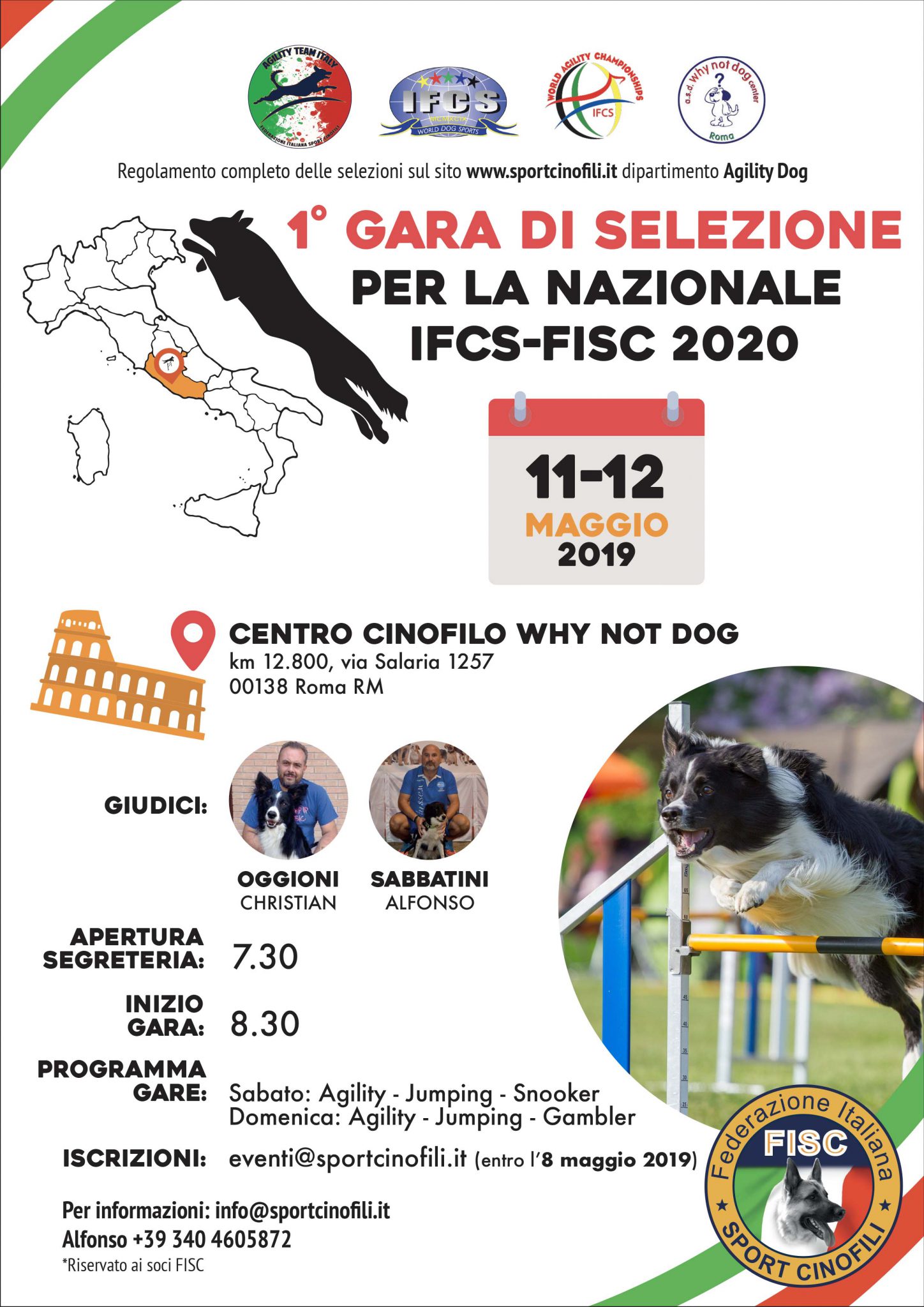 Info e Iscrizioni: Ufficio FISC 02.6123701 e eventi@sportcinofili.it