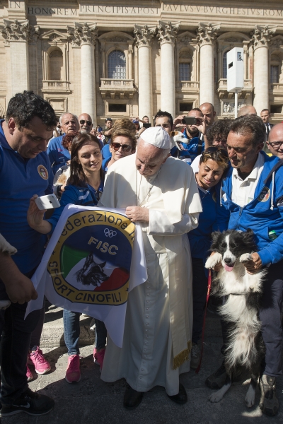 Si, è proprio oggi l’appuntamento che vede i nostri atleti presenziare, con posti a loro strettamente riservati, all’udienza generale di Papa Francesco insieme ai loro fedelissimi amici a 4 zampe.