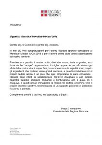 I successi per la Nazionale Italiana scesa in campo all’ IMCA & PAWC 2018 continuano ad arrivare. Il Presidente della Regione Piemonte Sergio Chiamparino si è voluto congratulare per le vittorie ottenute da Chiara Cuminetti atleta della Nazionale con il suo fedele compagno Black.