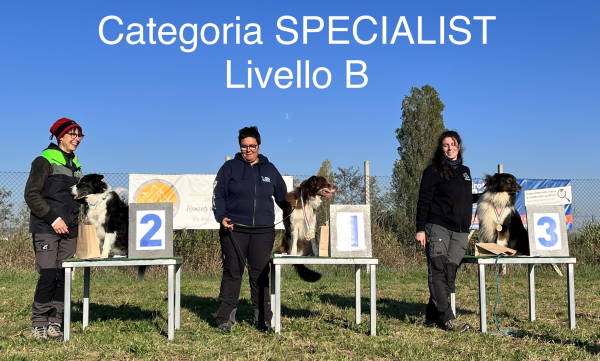 La Categoria SPECIALIST Livello B viene vinta da Mind the Dog Ancora Ancora Spike con Sabrina Paitoni (Dog Point Team) con il punteggio di 285/300 qualifica Eccellente, al secondo posto Nessie con Sophie Annette Doidge con il punteggio di 282/300 qualifica Eccellente e al terzo posto Attila con Silvia Guglieri con il punteggio di 216/300 con la qualifica Sufficiente.