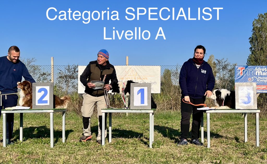 La Categoria SPECIALIST Livello A viene vinta da Empatia in the Star con Tiziano Beretta con il punteggio totale di 199/200 qualifica Eccellente, al secondo posto Evie per sempre della terra del falco con Dario Andorno con 195/200 qualifica Eccellente e al terzo posto Nebbia con Cristina Fraccaro (Dog Point Team) con il punteggio 194/200 qualifica Eccellente.