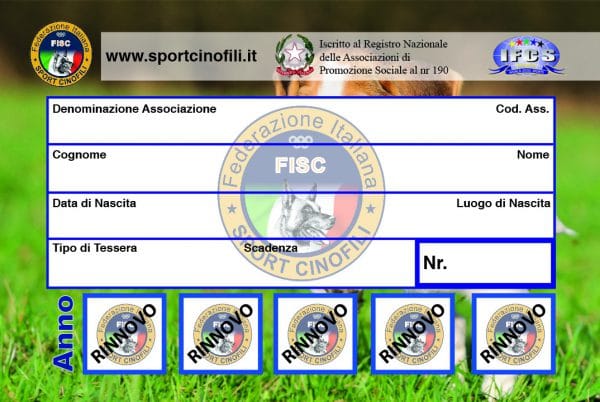 Ai nuovi soci potrete rilasciare la tessera FISC. Sono disponibili i bollini “Tesserato 2018” da apporre sulle tessere di tutti i soci rinnovati. Per ricevere i suddetti bollini e / 0 le tessere scrivere una mail ad info@sportcinofili.it specificando la quantità di bollini e / o tessere desiderata.
