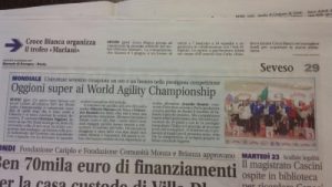 E’ già passato un mese dal WAC 2017 in Spagna e tanti sono stati i riconoscimenti ottenuti dalla squadra italiana. Nei giorni scorsi il Giornale di Seregno – Desio ha voluto porgere un omaggio al nostro atleta e Responsabile Nazionale dell’ Agility Dog FISC Christian Oggioni il quale si è contraddistinto portando a casa un bronzo nella prova individuale Gambler e un oro nella prova a Squadre.