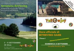 Il centro cinofilo YELLOWJOY ATTIVITÀ CINOFILE ASD di COSENZA organizza dal 2 all’8 Settembre sul Parco Nazionale della SILA tra Camigliatello e Lorica una settimana interamente dedicata al Retrieving, con un fitto programma di escursioni naturalistiche, visite guidate, training di base e riporto sia per principianti che per avanzati.