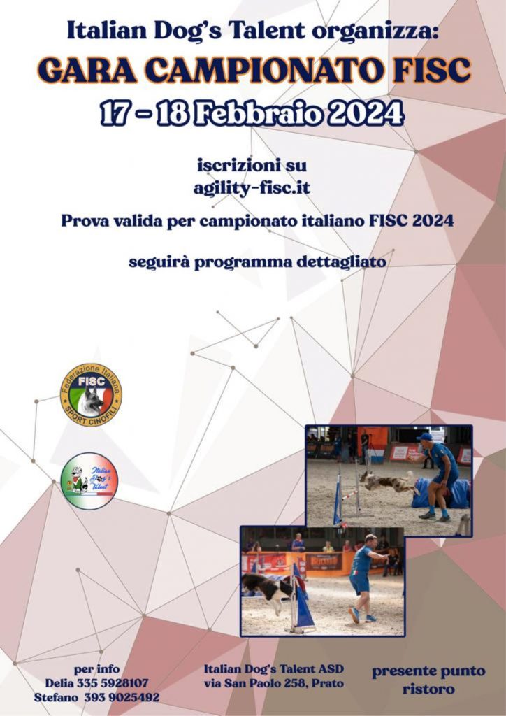 17 febbraio 2024 | GARA CAMPIONATO FISC – prova valida per campionato italiano FISC 2024 – PRESSO: Italian Dog’s Talent ASD via San Paolo 258, Prato – TOSCANA